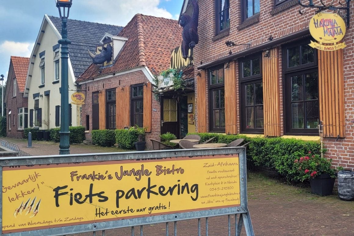 En tot slot is het dan na de wandeling of fietstocht heerlijk om uit eten te gaan. Uniek en mijn favoriet in Neede is Frankie’s Jungle Bistro aan het Kerkplein nummer 6 in het centrum van het dorp. Het Zuid-Afrikaanse themarestaurant is al een avontuur om van binnen te bekijken: een interieur volledig in tropische junglestijl met zelfs echte dieren, vissen en vogels. Er is een speciale kinderhoek, eveneens volledig in stijl. En zowel de uitgebreide menukaart als de placemats op tafel zijn al even avontuurlijk, voor elk wat wils. Bij mooi weer is het ook heerlijk toeven op het buitenterras.